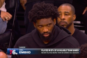 太脆了!恩比德生涯出勤率仅51% 单赛季出战场次从未超过68场